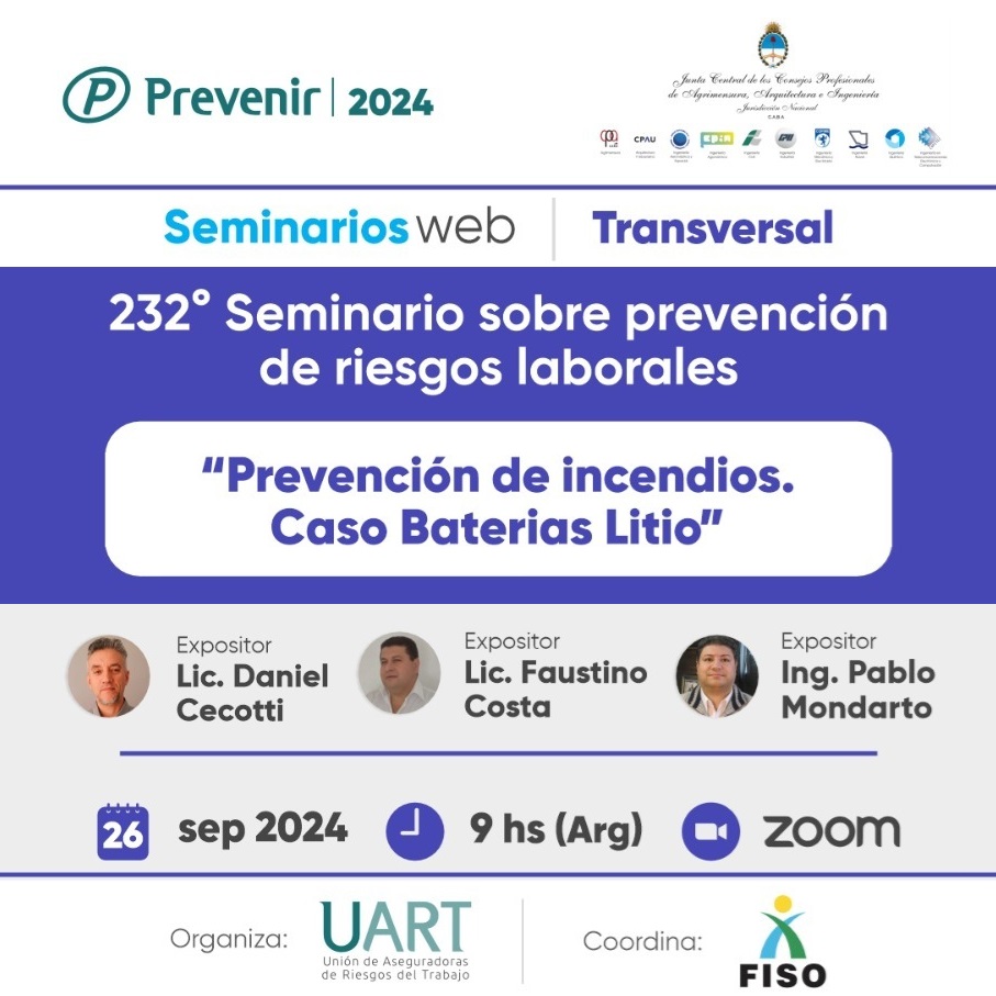 232º Seminario sobre prevención de Riesgos Laborales: Prevención de incendios. Caso Baterías Litio - Jueves 26 de Septiembre de 2024