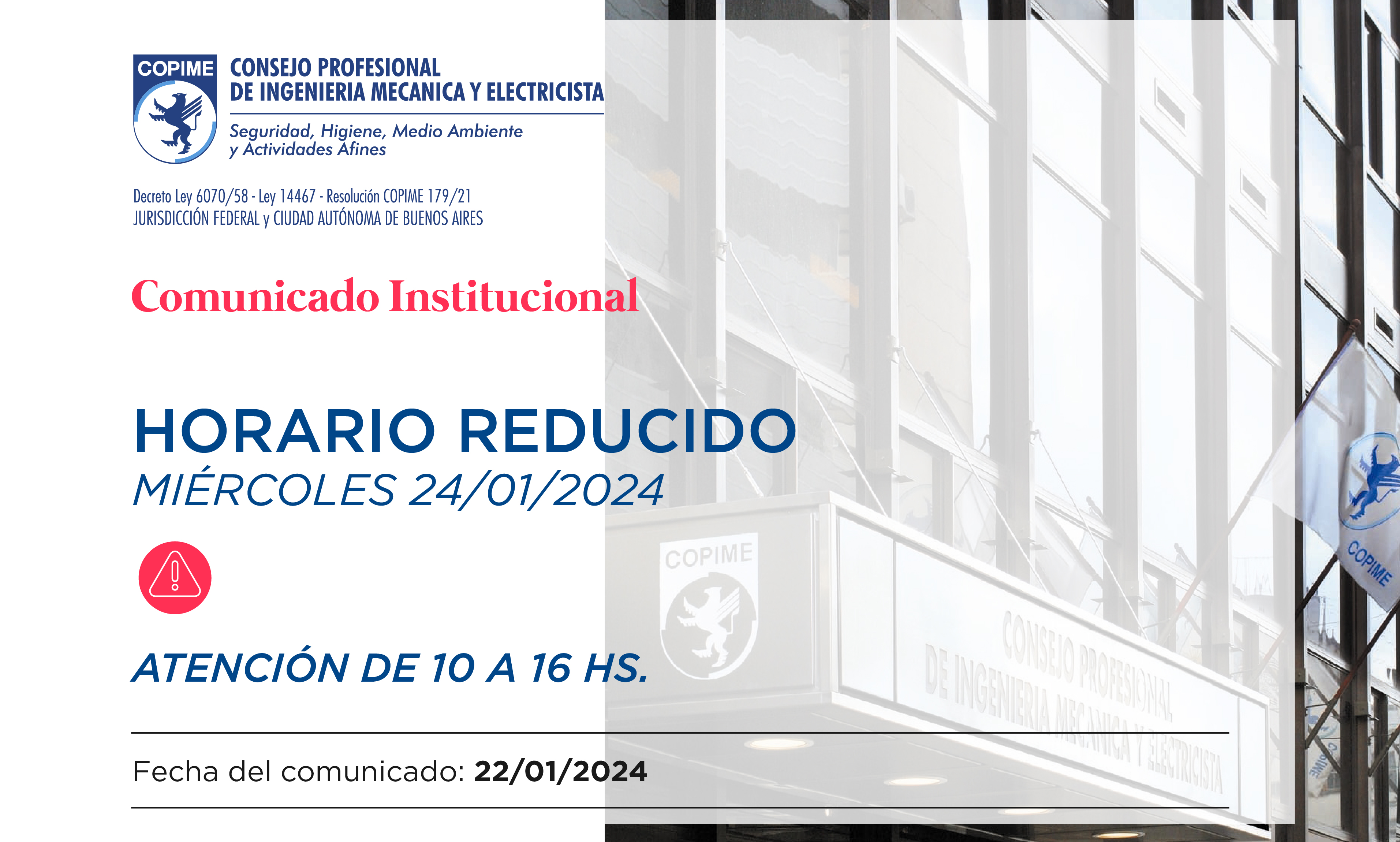 Horario Reducido: Miércoles 24 de enero de 2024