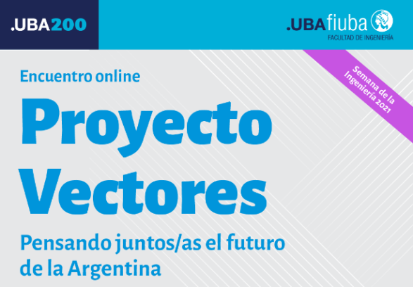 La Facultad de Ingeniería de la Univerdad de Buenos Aires (FIUBA), invita al Encuentro Online "Proyecto Vectores: Pensando Juntos/as el Futuro de la Argentina", que se llevará a cabo en el marco de la Semana de la Ingeniería 2021. El evento se realizará el miércoles 9 de junio a las 19 hs bajo la modalidad 100% virtual.