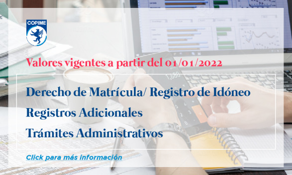 Valores de Matrícula/ Registro de Idóneo 2022 y montos de Trámites Administrativos