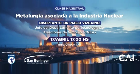 El Centro Argentino de Ingenieros (CAI), junto con el Instituto de Tecnología Nuclear Dan Beninson y el Consejo Profesional de Ingeniería Mecánica y Electricista (COPIME), invitan a participar de la Clase Magistral: Metalurgia asociada a la Industria Nuclear el miércoles 17 de abril, a partir de las 17 hs., en la Biblioteca del CAI (Cerrito 1250).