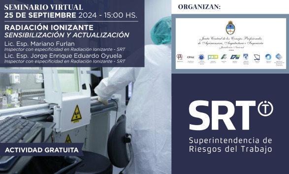 La Superintendencia de Riesgos del Trabajo (SRT) y la Junta Central de los Consejos Profesionales de Agrimensura, Arquitectura e Ingeniería de Jurisdicción Nacional invitan a participar del Seminario: Radiación Ionizante - Sensibilización y Actualización.